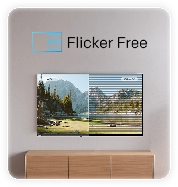 Y65シリーズは Dolby Atmos に対応。映像に合わせて立体的でダイナミックな音を再現します。まるで音に包まれるような臨場感で、細やかなサウンドまで鮮明に描き出し、映画の世界に深く引き込みます。